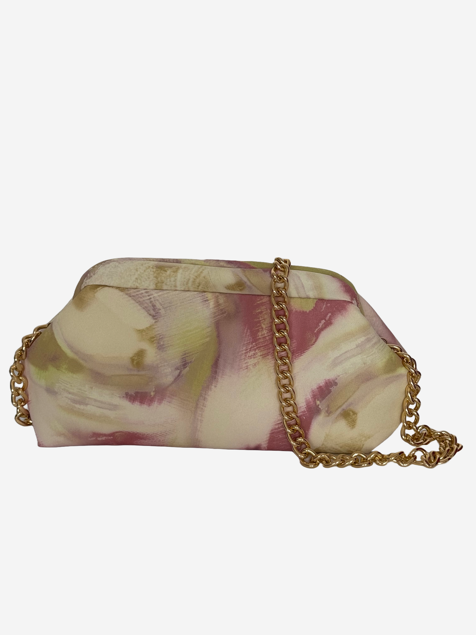 Bolso hecho a mano con estampado degrade con tonos rosas, beig. Añade un toque moderno y sofisticado a tu look con este accesorio único y artesanal.