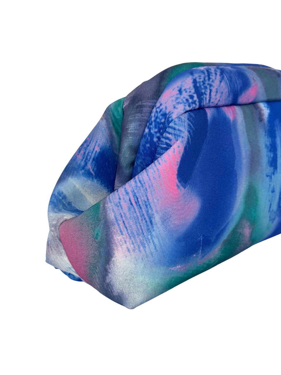 Bolso exclusivo Montse Guals hecho a mano con tela estampada y cadena dorada. Modelo único, versátil con o sin cadena. Elegancia artesanal garantizada.