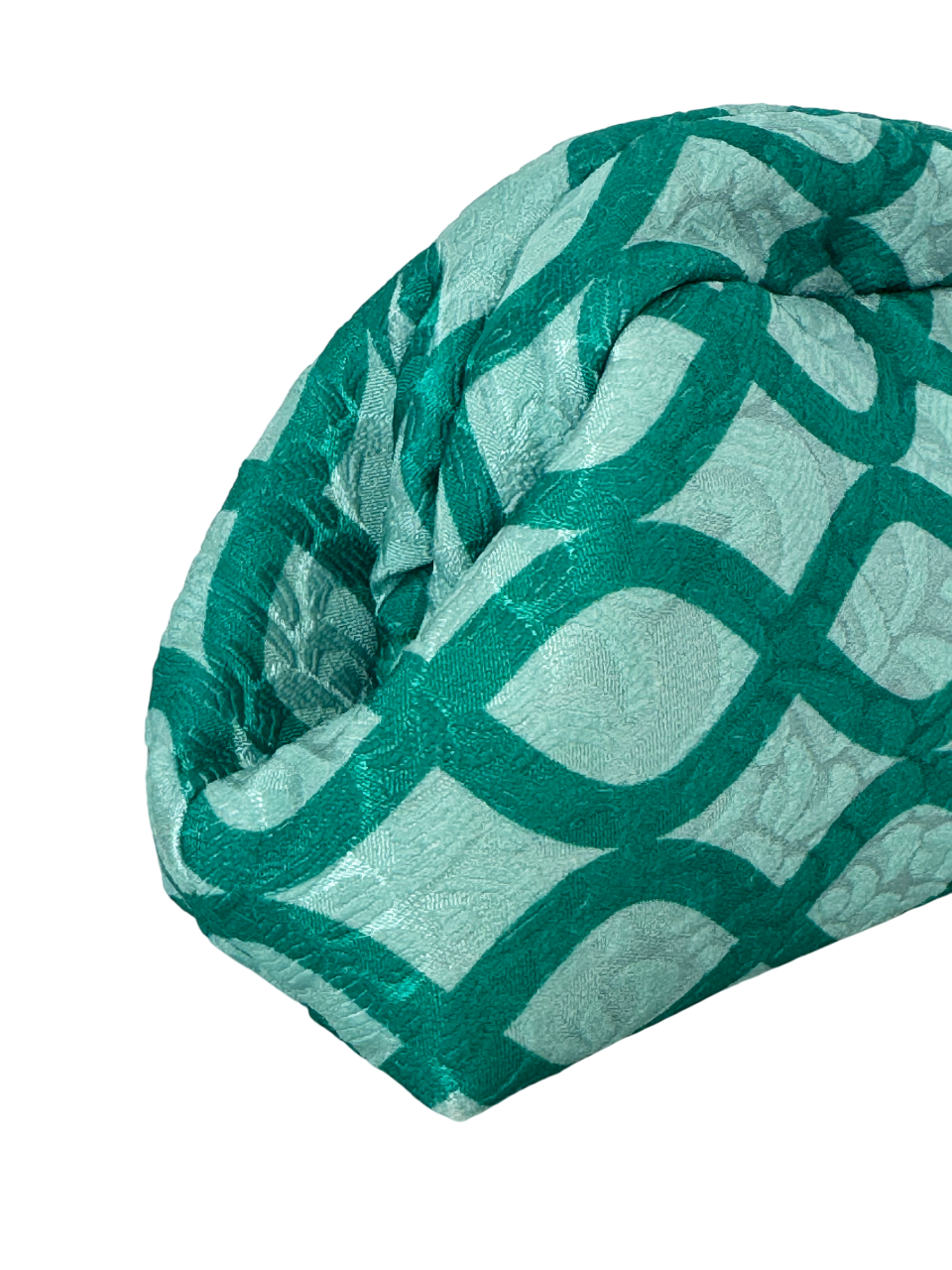 Bolso exclusivo Montse Guals hecho a mano con tela estampada y cadena dorada. Modelo único, versátil con o sin cadena. Elegancia artesanal garantizada.